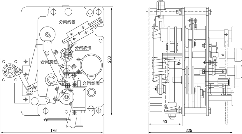 ZDGK-12高壓環(huán)網(wǎng)柜所配V型彈簧操動(dòng)機(jī)構(gòu)為額定電壓12kV交流金屬封 閉式開關(guān)的配置設(shè)備,該斷路器機(jī)構(gòu)采用拉伸彈簧過(guò)死點(diǎn)控制斷路器合閘 的動(dòng)作,分閘操作采用了壓縮彈簧蓄能控制。該產(chǎn)品具有重合合閘功能,與隔離機(jī)構(gòu)有聯(lián)鎖功能,可靠性高、壽命可達(dá)10000次,安裝方便和適應(yīng)性強(qiáng)等特點(diǎn),可完全替代原充氣柜斷路器機(jī)構(gòu)。
